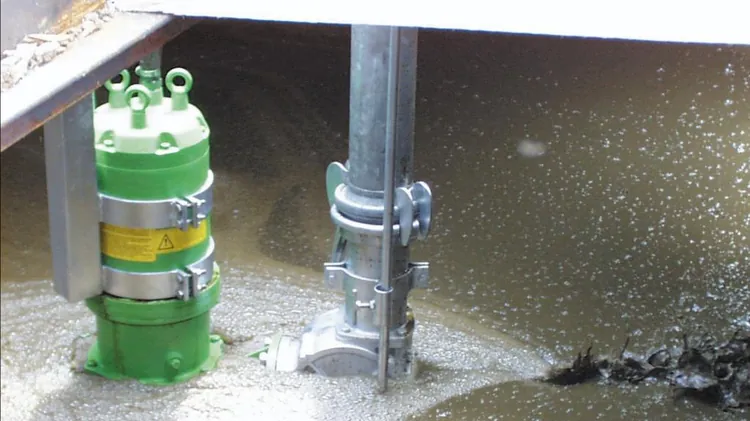 Les pompes submersibles ou à arbre long de grande capacité de Bauer sont utilisées pour le rinçage et le pompage du fumier dans les lagunes ou les réservoirs, ainsi que pour le transport du fumier vers les champs dans les exploitations d'élevage.